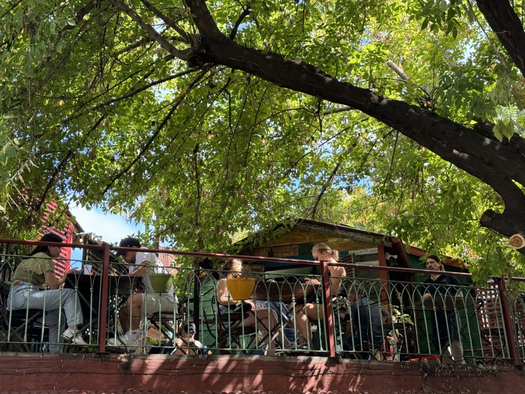 Il tragitto dall’aeroporto alla capitale argentina ci porta attraverso diversi quartieri. Sotto uno dei viadotti dell’autostrada passiamo per una delle baraccopoli di Buenos Aires. Qui le chiamano Villas o Villas Miseria. Un ossimoro che evidenzia dolorosamente il problema di tante persone che vivono ai margini geografici e non. L’Argentina è economicamente sfiancata da decenni di malgoverno e, agli occhi di stranieri come noi, è sorprendente come il neopresidente Milei rappresenti per molti la speranza di una svolta. Per ora vediamo molti senzatetto accampati nei parchetti.
