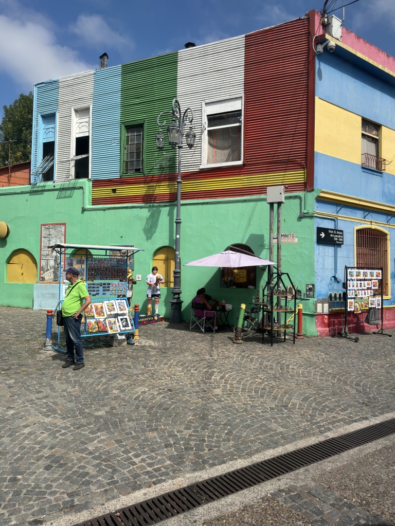 In alcuni quartieri – o barrios – i colori arrivano a un climax: precisamente nel quartiere La Boca. È un tripudio di accostamenti sgargianti che, a un italiano, possono far pensare a Burano. Queste sono case povere, spesso di lamiera. Ma non importa, il colore dà tanta allegria, anche alla povertà. La Boca ospita il leggendario stadio detto la Bombonera, con i suoi colori inconfondibili, gli stessi della maglia del Boca Juniors.